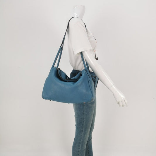 Hermes Lindy 34 Taurillon Clemence Blue Silver Hardware Women's Handbag
