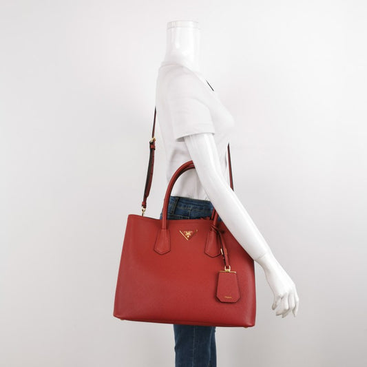 Prada Double Bag Medium Calfskin Red Tote Bag
