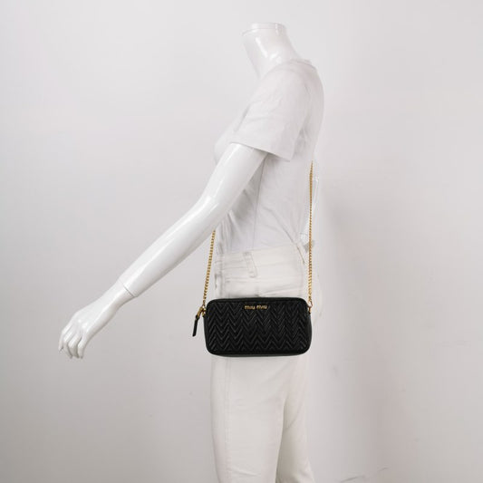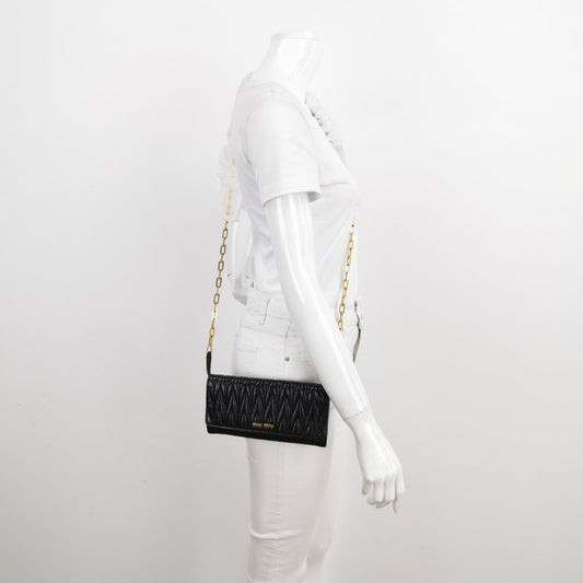 Miu Miu Black Matelassé Leather Wallet on Chain