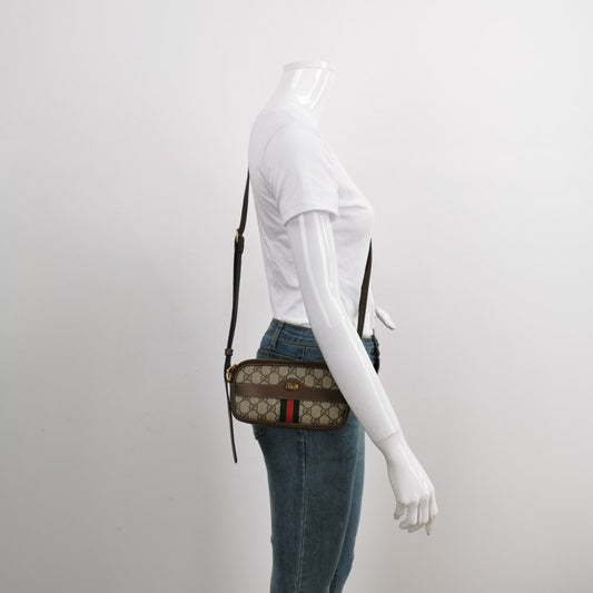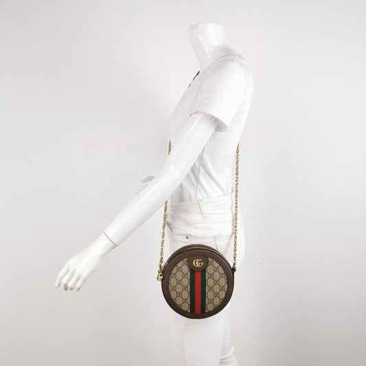 Gucci GG Supreme Monogram Web Mini Ophidia Round Shoulder Bag Brown