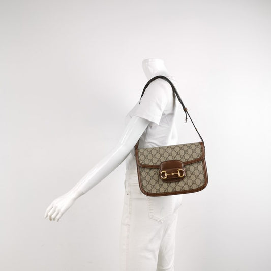 Gucci GG Supreme Monogram 1955 Horsebit Shoulder Bag Brown