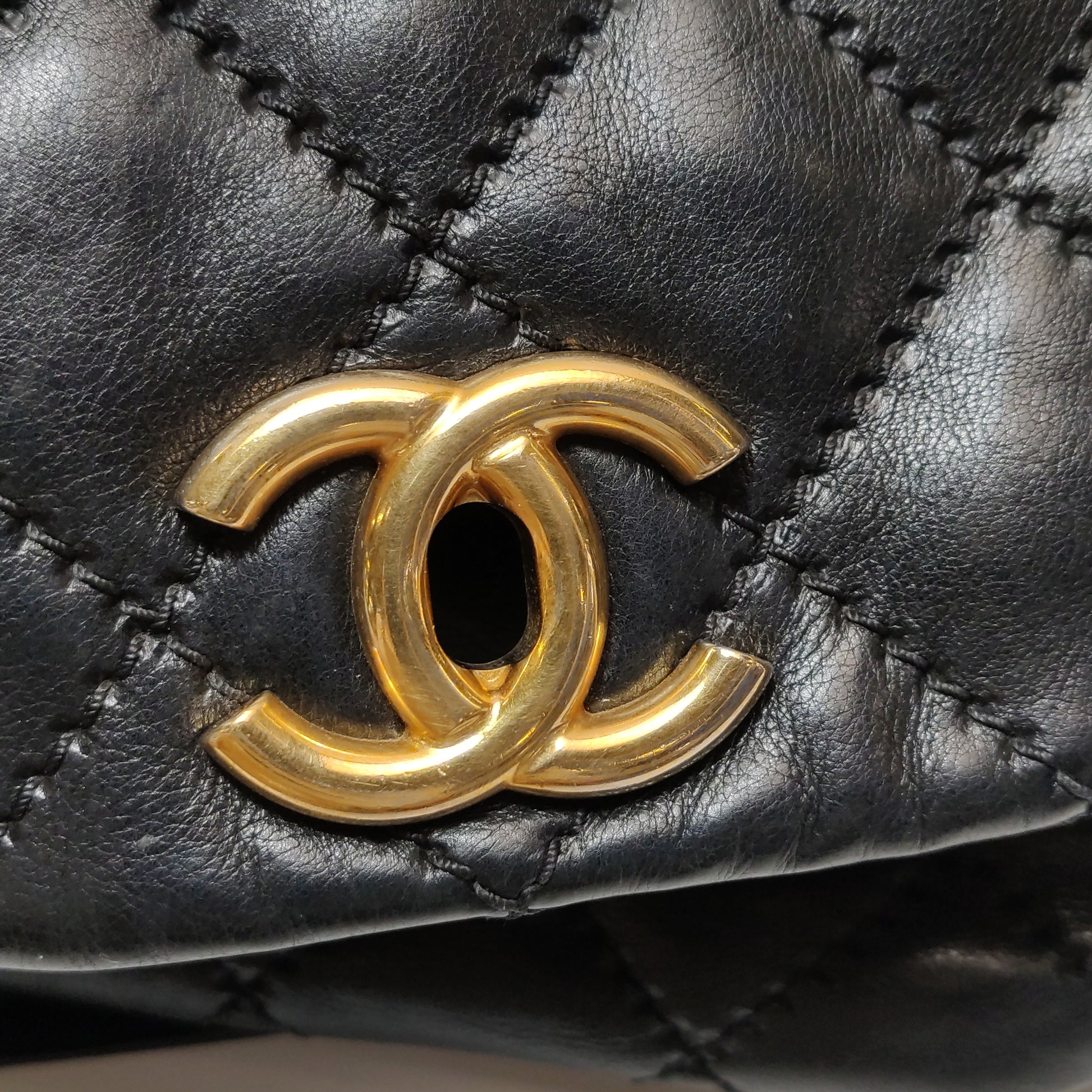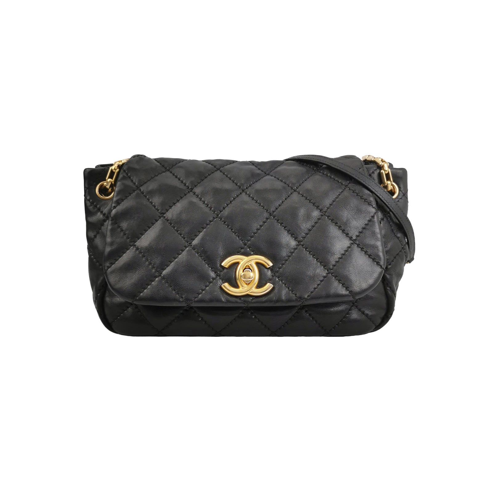 Chanel Calfskin Quilted Retro Chain Flap Bag Black