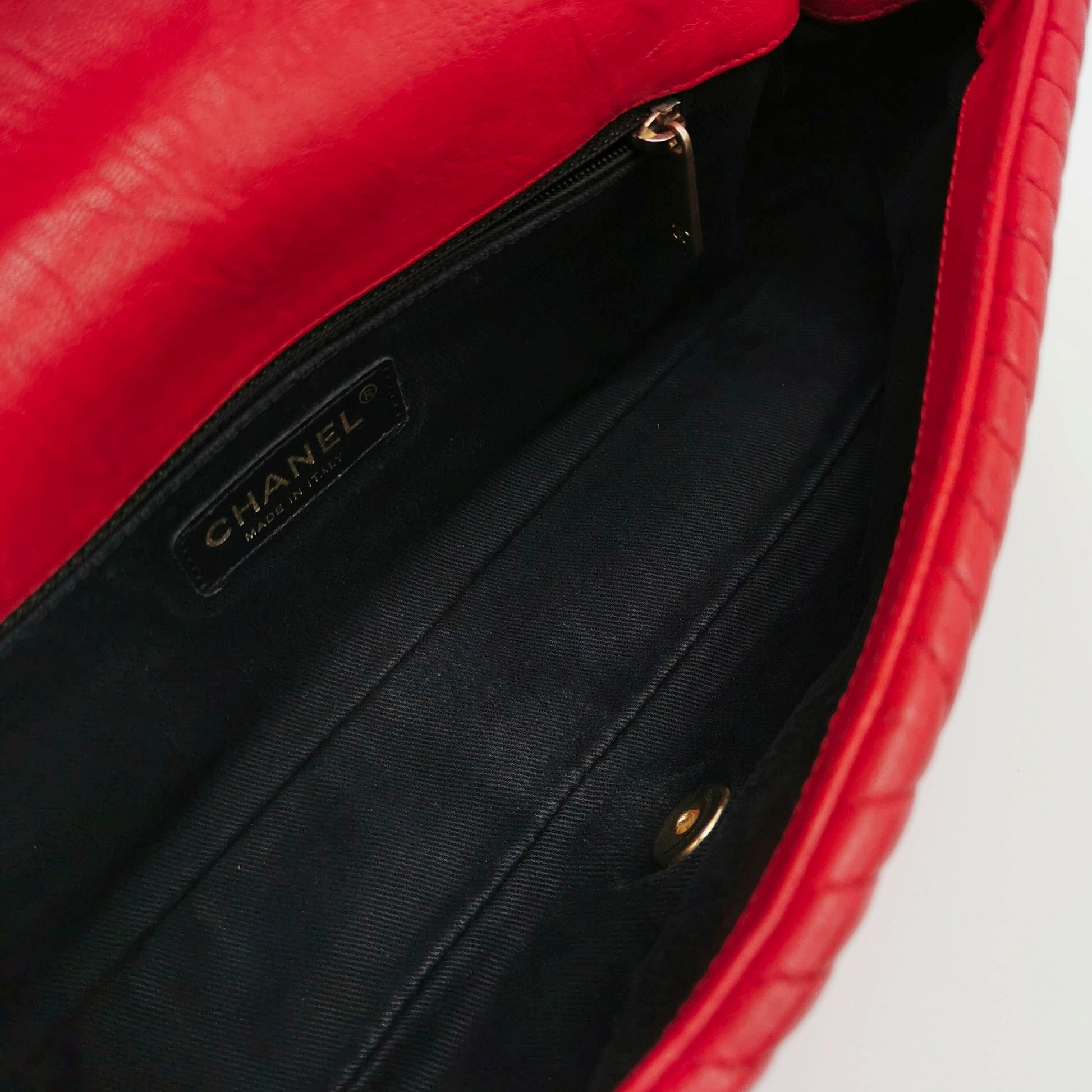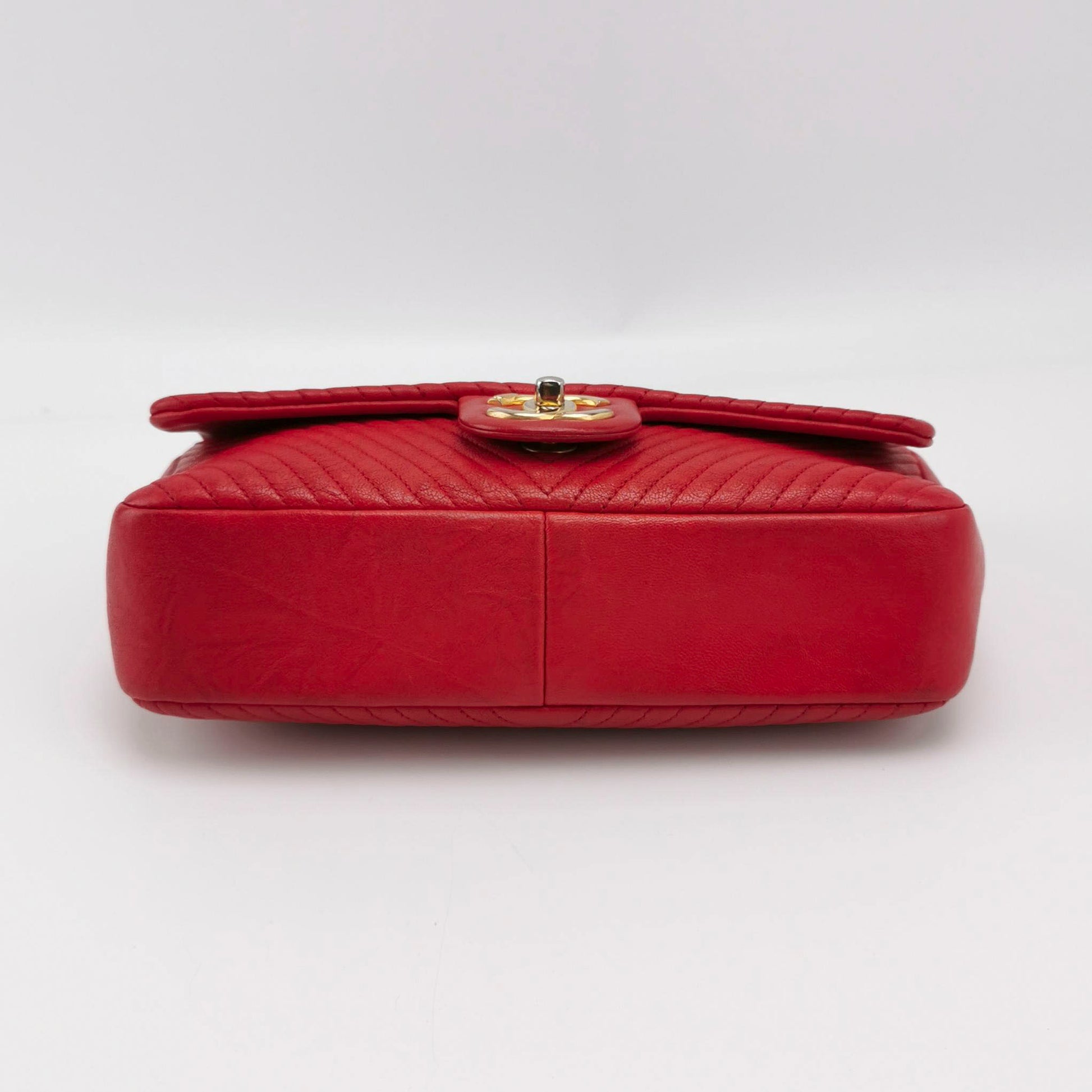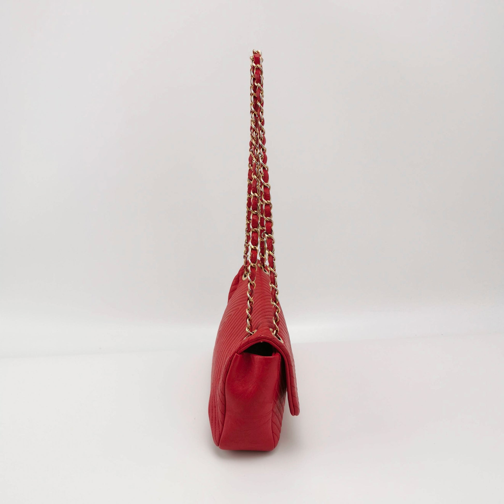 Chanel Red Chevron Quilted Lambskin Medium Classic Single Flap Bag
